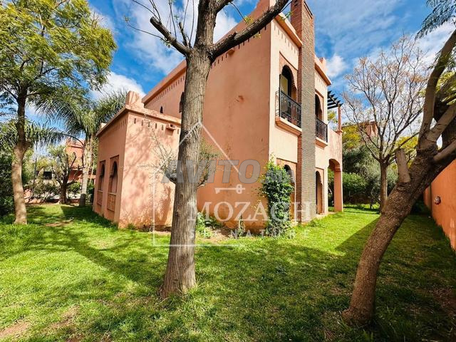 Nous mettons à la location longue durée une magnifique villa mitoyenne à Amelkis Golf, située au sein d’une belle résidence sécurisée avec piscine collective et plusieurs espaces verts, sur la route de Fès, à proximité d’Atacadao. La villa est isolée (quatre façades) et dispose d’un agréable jardin privé. Composition de la villa : Rez-de-chaussée : • Triple réception • Cuisine • Toilettes invités Étage : • Quatre chambres, dont une suite parentale avec dressing et salle de bain privée • Une salle de bain pour les autres chambres Sous-sol : • Parking en sous-sol • Hall • Chambre de service Conditions: 1 mois de caution 1 mois de loyer 1 mois de frais d'agence Pour plus d’informations veuillez nous contacter.