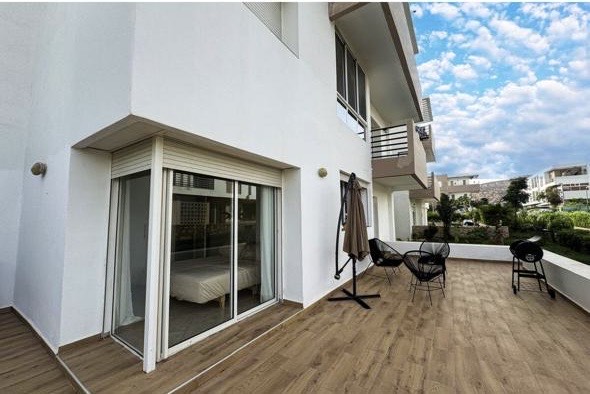 Appartement en location longue durée de 114 m2, situé à Imi Ouaddar. L’appartement se compose de : - Deux chambres. - Deux salles de bain avec douches à l’italienne. - Une très grande cuisine entièrement équipée. - Un salon et une salle à manger lumineux. - Une grande terrasse ouvrant sur un vaste jardin privatif. La résidence dispose de trois piscines, parking et air de jeux pour les enfants et d’un environnement calme et sécurisé, 5 minutes de la plage et d'un petit port de pêche traditionnel.